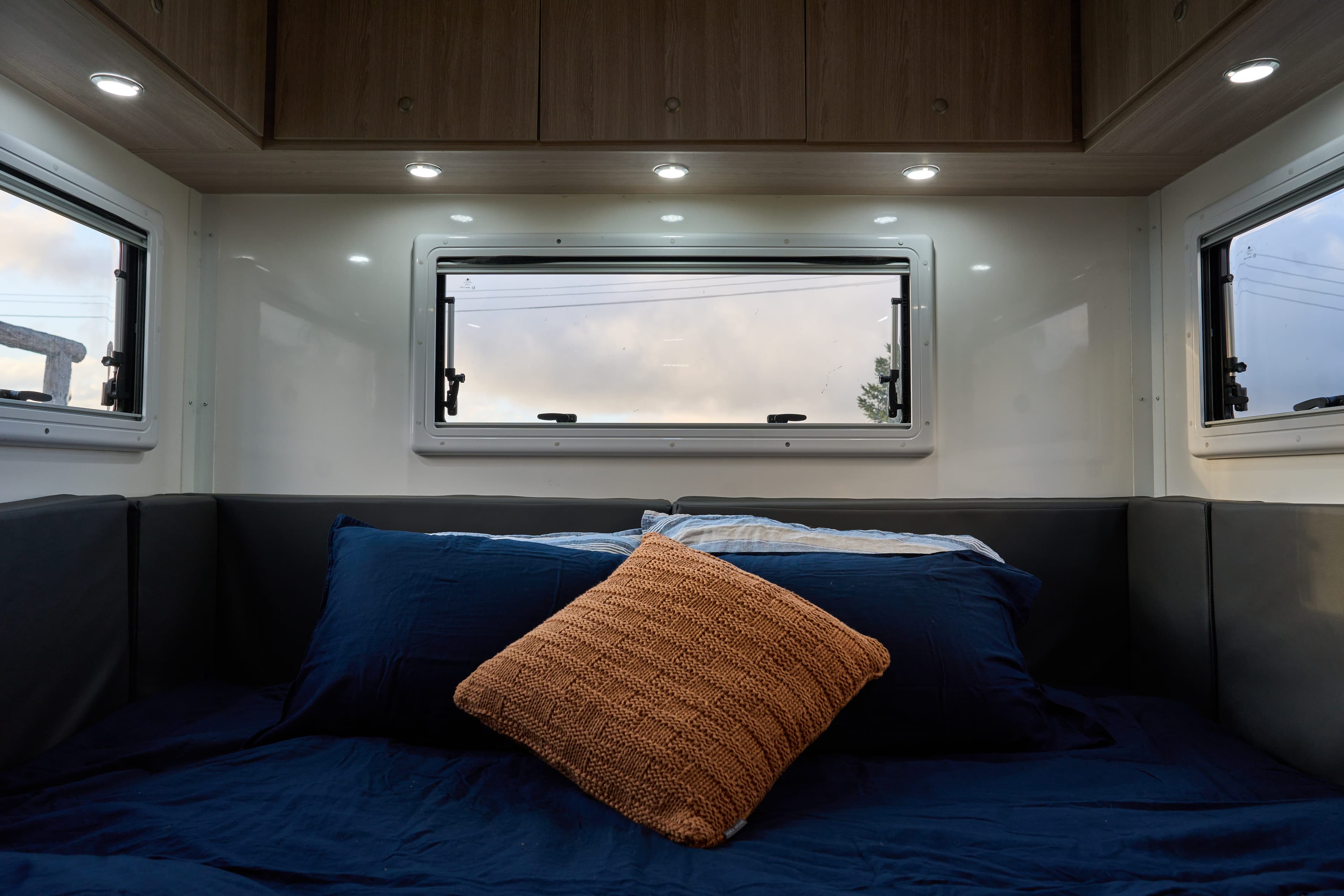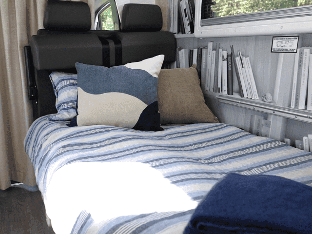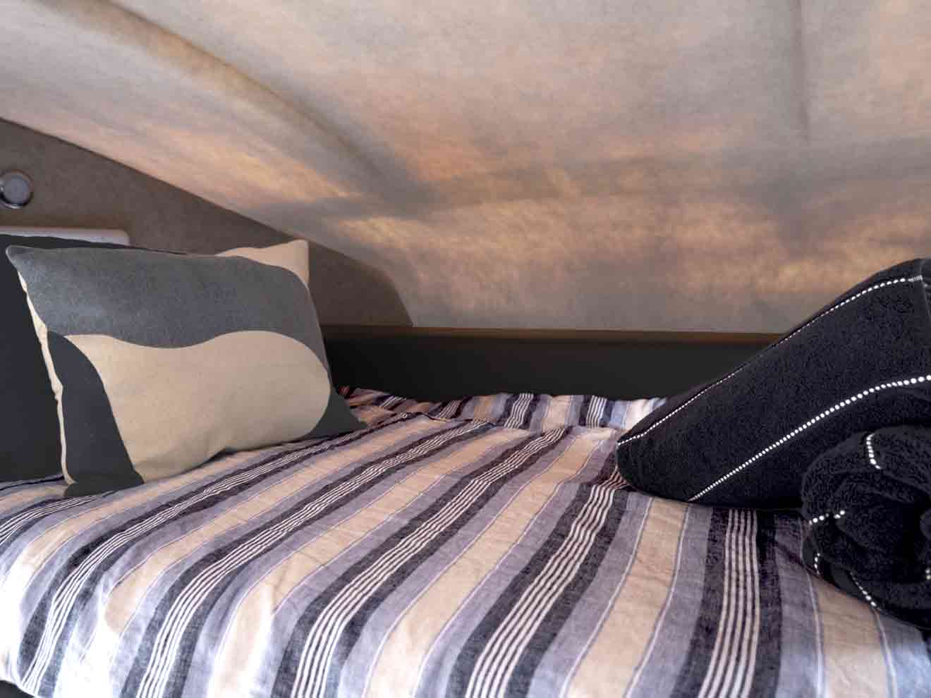 Seating transforms into comfortable bedding arrangements. Comfort and privacy are prioritised.
