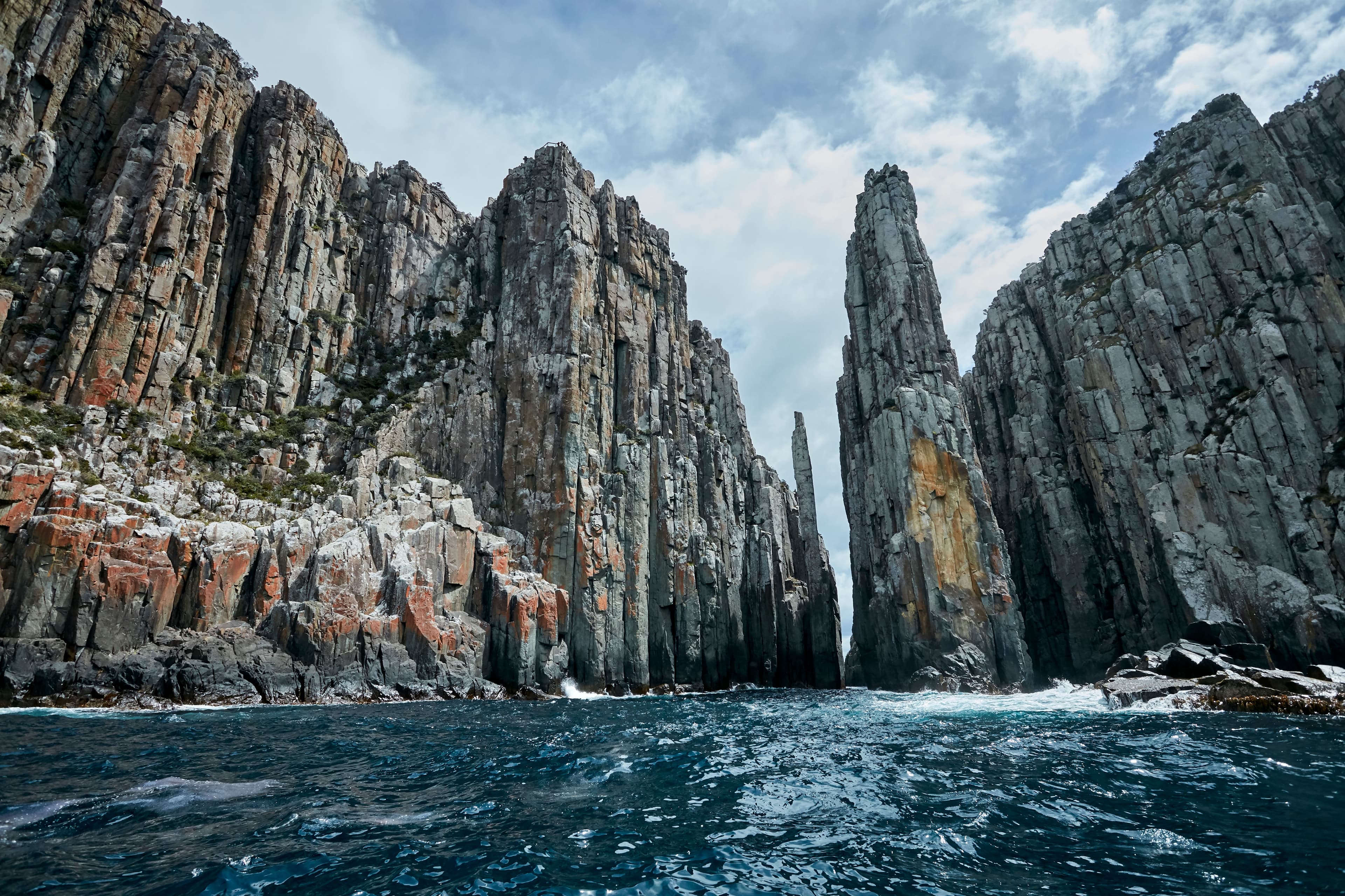 Consider embarking on a cruise departing from Port Arthur, offering an opportunity to experience Australia's highest sea cliffs up close. This scenic journey takes you beneath Cape Pillar, home to the highest vertical sea cliffs in the Southern Hemisphere. Along the way, you'll encounter not only waterfalls, rock formations, archways, and deep-sea caves but also seals, migrating whales, seabirds, and pods of playful dolphins