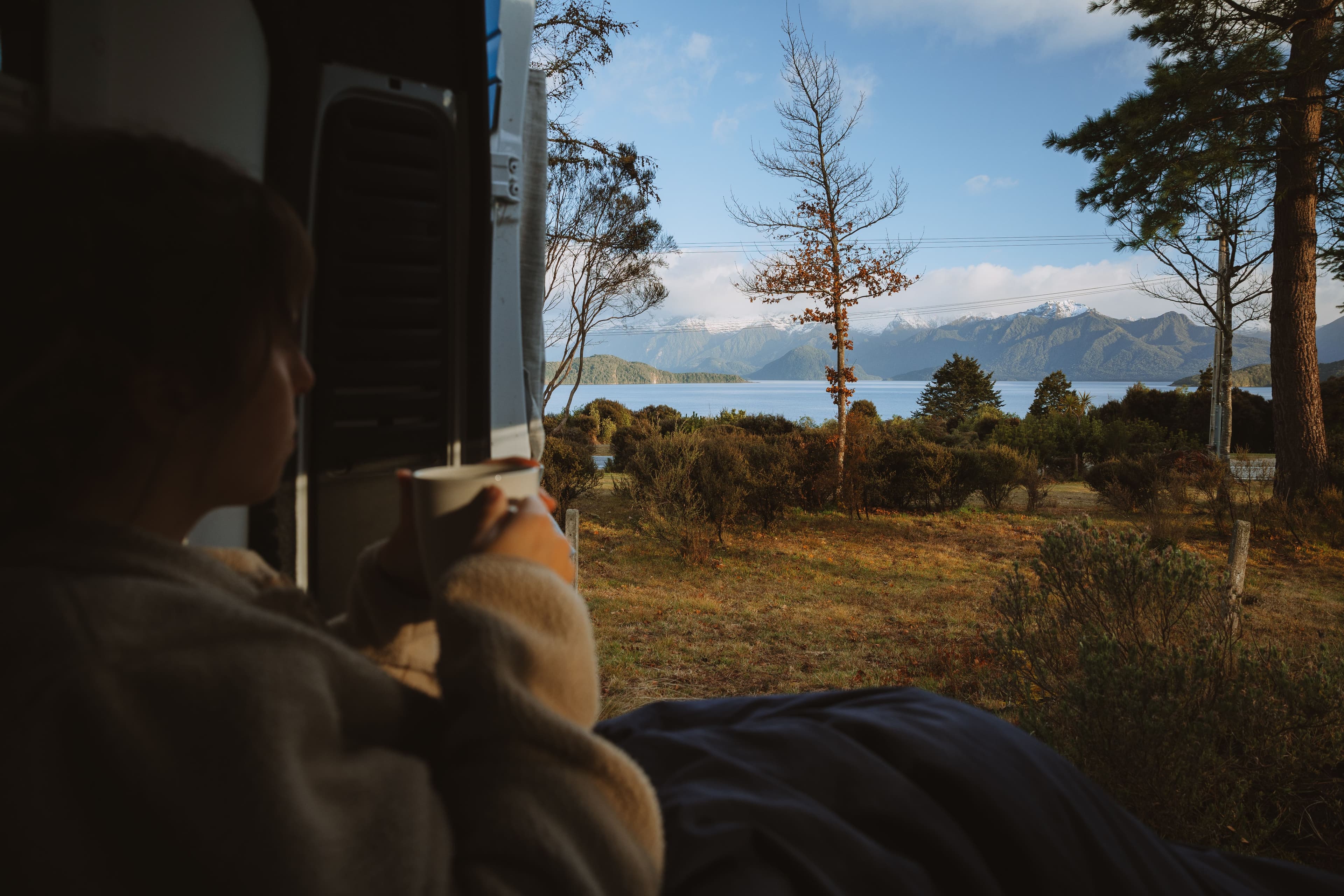 Waking up to a beautiful sunrise over the lake, we swing our back doors right open to soak it all up. The morning breeze was chilly, but the coffee was hot. There was a sense of calm mixed with the building excitement for our next adventure.